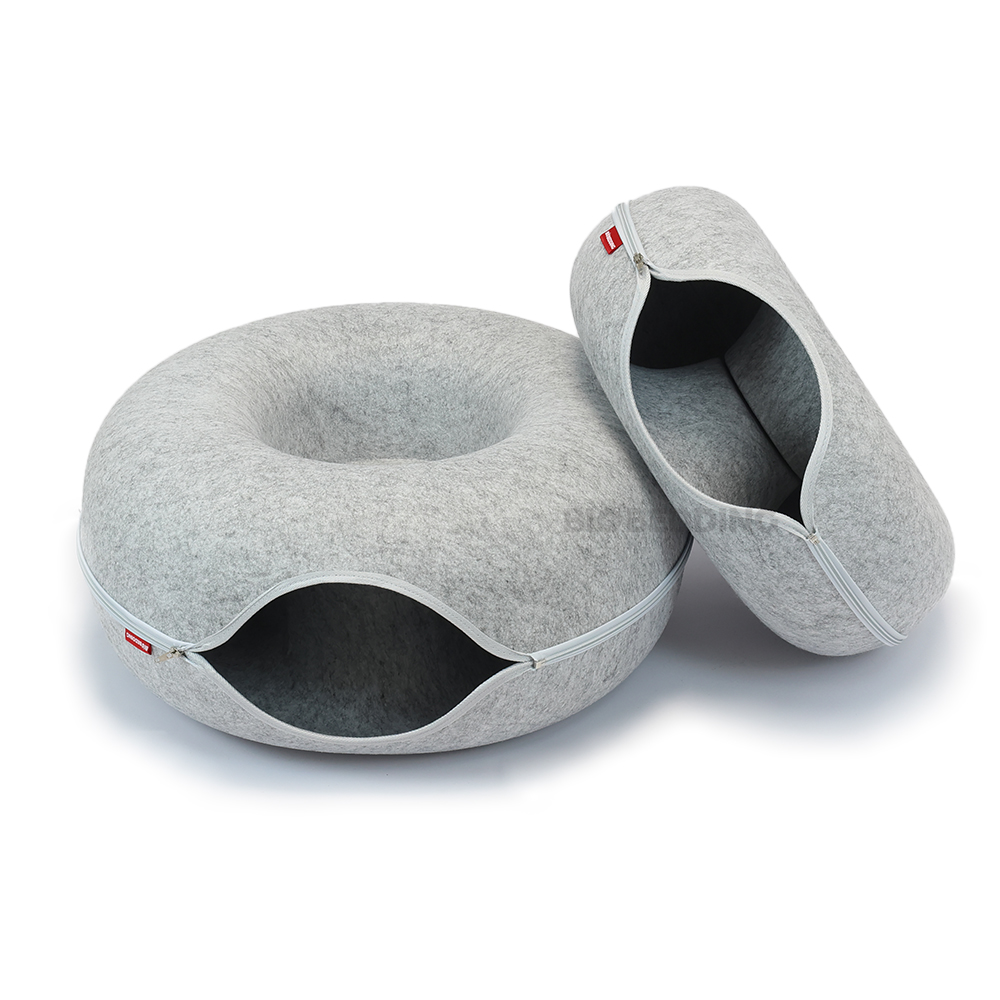De lichtgrijze Cosy Donut met een diameter van 60 cm geeft katten een extra ruime plek om zich terug te trekken. Het ontwerp met een enkele ingang maakt het een veilige en knusse slaapplaats, terwijl de royale maat ook geschikt is voor grotere rassen of voor twee katten die samen willen liggen.